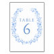 Blaues Folkloreporzellan Eleganter Garten Hochzeit Tischnummer