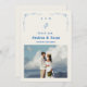 Blaues Foto-Hochzeit mit handgezeichnetem Bow Mono Dankeskarte