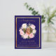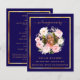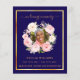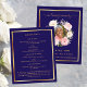 Ein elegantes zweiseitiges Programm. Ein dunkelblauer Hintergrund, ein vergoldeter Rahmen in den Imitaten und ein Raum für Ihr Foto, der mit einem rosa und weißen Kranz aus Blumen geschmückt ist. Personalisieren und hinzufügen von Namen, Daten und Text.