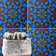 Das Hauptmotiv dieser Keramik-Kachel ist eine komplexe Sternexplosion, die in symmetrischen Armen mit detaillierten geometrischen und blumigen Mustern strahlt. Die Farbpalette ist auffallend, mit einem kühnen Kontrast von hellblau zu den warmen Farbtönen Rot und Gelb, der die akribischen Details unterstreicht und ein Gefühl von Energie und Bewegung hervorruft. Der Stil erinnert an die traditionelle afrikanische ethnische Mosaikkunst, die jedoch mit einem zeitgenössischen Flair verziert ist. Die schwarzen Konturen definieren jedes Element innerhalb des Designs und fügen dem visuellen Gesamtcharakter Tiefe und Dimension hinzu.