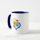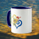 Blaues gelbes geflecktes Herz mit Sonnenblumen Bou Tasse