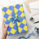 Blaues gelbes Schachbrett Diamantmuster Geschenkpapier