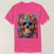Dieses Shirt aus blauem, gelbem Zucker, die Blume Día de los Muertos und die bunte mexikanische Folklorekunst verleihen den Köpfen eine fröhliche Note. Dieses atemberaubende Design zeichnet sich durch einen hellgelben Zuckerschädel auf einem blauen Hintergrund aus, umgeben von fett roten, orangen, rosa und violetten Blumen mit ütengrünen Blätter. Intrikate Blumenmuster drehen sich durch den Schädel und vermischen traditionelle Symbolik mit modernem digitalen Flair. Dieses Shirt ist ideal für Lieben mit ausdrucksvoller, kreativer Mode, für Künstler, Tattoofreunde, Kulturfestivals oder für alle, die gezeichnet sind, die Kunst mit lebendiger Energie zu schädigen. Die Mischung aus warmen und coolen Tönen bringt Ausgeglichenheit und Schönheit in das Design und macht es zu einer tragbaren Feier des Lebens, der Erinnerung und der Freude. Jedes Detail, vom handbemalten Aussehen der Blätter bis zu den leuchtenden Augen, strahlt künstlerische Leidenschaft aus. Das ist mehr als ein T - Shirt - es ist eine kühne Darstellung von Kreativität, Kultur und Farbe.