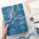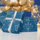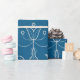Blaues Geschenkpapier mit weißem Blumenmuster