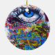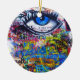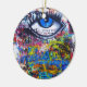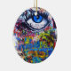 Farbenprächtiges, quälendes, modernes Graffiti-Foto an einer Stadtmauer, in Prag mit blauen bösen Augen und farbenfrohen Graffiliates.