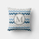 Blaues Grau-Zickzack Monogramm-dekoratives Kissen