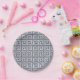 Maßgeschneiderte Teller mit marineblauen griechischen Schlüsselmustern. Fügen Sie Text und Bilder hinzu, indem Sie auf die Schaltfläche "Anpassen" unterhalb des Produktabbilds klicken.