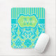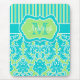 Blaues Grün-weißes gestreiftes Damast-Monogramm Mousepad