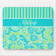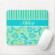 Diese modernen mit Monogramm des Grüns und weißen Streifen des Türkisblaus, mit Blumendamastmuster mousepad hat die Schablonenkästen, damit Sie mit Ihrem eigenen Namen, Initialen, Monogramm oder anderem Text besonders anfertigen. Wenn Sie irgendeine Hilfe benötigen, die dieses modische mousepad besonders anfertigt, emailen Sie bitte niteowlstudio@gmail.com.