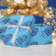 Blaues hässliches Weihnachtspulli-Muster maßgeschneidertes Holiday Wrapping Paper. Personalisierte Weihnachts-Geschenkpackung, gedruckt mit Ihrem Text. Erhältlich in matt und hochglänzend lackiert. Spaß Packung Papier Rollen für Kinder und Erwachsene. Anpassbare Hintergrundfarbe. Ideal für Freunde, Familie, Vater, Freund, Ehemann, Kollegen und andere. Gemütlicher zeichn aus dickem Winterpulli.