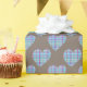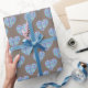 Blaues Herz-Muster auf dunkelschokoladenbraun Geschenkpapier