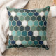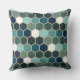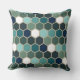 Modisches Wurfskissen des blauen Hexagonmosaiks.