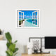 Entspannen Sie sich in der ruhigen Umgebung des Fakes und genießen Sie die blaue Aussicht auf den Himmel. Spaß, realistische optische Täuschung landschaftliches Poster für ein Büro oder eine Studiowand.