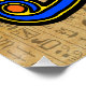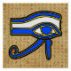 Poster mit dem ägyptischen Symbol, das Horus Auge auf Hieroglyphen. Das Horus Eye ist in blauen, gelben und schwarzen Konturen auf Hieroglyphen-Hintergrund gestaltet.
