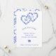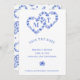 Schicken Sie ein Save the Date für Ihre Frühjahrshochzeit mit zwei blauen Hydrangea-Herzen, die mit den Initialen des Paares im Inneren verwoben sind. Das ist perfekt für eine Frühjahrs- oder Gartenhochzeit und koordiniert mit anderen Gegenständen in der Blue Hydrangea Hochzeitskollektion.