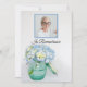 Erleben Sie ein Jahr nach dem Besuch der hübschen Blue Hydrangea im Jar Death Anniversary Memorial Invitation Ihre Lieblinge. Diese bezaubernde individuelle Blütenfeier zum Tribut an das Leben auf der Beerdigung lädt zu einem hübschen nahen Blumenfoto einer blauen Hydrangea-Blume Blüte in einem Glas Glas Glas Glas. Personalisieren Sie es mit Bild und Details des Verstorbenen zusammen mit Veranstaltungsinformationen. Erhältlich als gedruckte Einladung zum Verschicken und/oder als digitaler Download für den einfachen digitalen Austausch online.