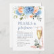 Blaues Hydrangea Roses PEARLS & Prosecco Einladung