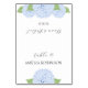 Blaues Hydrangea Wasserfarbe Gedeckte Platzkarte Tischnummer