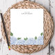 Dieses schöne Notizblock eine Wasserfarbe hydrangea Rand in blau. Fügen Sie Ihre Personalisierung mithilfe des Vorlagenformulars hinzu. Um den Schriftart, Stil oder Layout zu ändern, wählen Sie die Option "Weiter anpassen".
