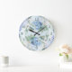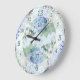 Blaues Hydrangee und florale Wasserfarbenwall-Uhr Große Wanduhr