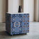 Lebhaftes Gewebe-Papier-Design mit einem nahtlosen Muster aus geometrischen Formen in Blau- und Orangetönen.