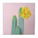 Dieses Trio des blauen Kaktus sitzt auf einem rosa Hintergrund mit einer gelben Blume.
