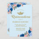 Blaues Kleid und Blumenquinceanera Einladung