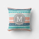 Chic und modernes aquamarines Monogramm des Türkisaquablaus, orange weißesstammes- des Musters kundenspezifisches rosa des Pfirsiches, Grauen, der Marine Blau- und dekoratives Throwkissen. Völlig kundengerecht, fügen Sie Ihre eigene Initiale für ein wirklich einzigartiges Wohngestaltungeinzelteil hinzu.