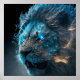 Blaues kosmisches Glühen Feuer Löwe Poster