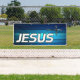 blaue Kreuz und Planken Jesus-Kirchenfahne