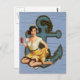 Blaues Küstenschiff und Ankerpool Party Postkarte