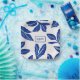 Mit diesem blauen Blätter-Design und der Wirkung von gefeuerten Tonwaren verleihen Sie Papier den Look der stilvollen Töpferei. Paarte Initialen können ein glückliches Paar, Zwillinge oder andere zwei andere, die eine gemeinsame Feier teilen, darstellen.