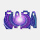 Diese helle, farbenfrohe Geschenkbox ist mit einem inspirierend Stück moderner abstrakter Kunst dekoriert, das eine stilisierte, geometrische Spiralgalaxie darstellt. In einer Ecke der Komposition befindet sich ein brillantes weißes Licht, lila, violette, hellblaue und aquamarina grüne Spiralarme und kleinere Äste auf tiefblauem Hintergrund. Alles wird durch einen Mosaikeffekt gefiltert. Es ist eine coole, kreative Idee für ein zeitgenössisches, farbenfrohes Party, oder für ein künstlerisches Business-Event die verzauberten Gadgets zu verschenken.
