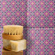 Diese Keramik ist mit einem aufwändigen Muster verziert, das eine harmonische Mischung verschiedener lila- und rosa Farbtöne darstellt. Das Design besteht aus sorgfältig gefertigten Diamantformen, die durch subtile beige Anschlüsse miteinander verbunden sind, wodurch zusätzliche geometrische Formen entstehen und das Gesamtmuster komplexer wird. Das faszinierende Muster ist der einzige Fokus, der eine Aura der Eleganz und Eleganz ausstrahlt. Diese Kachel mit ihrer modernen, aber zeitlosen Ästhetik könnte eine atemberaubende Ergänzung zu jeder Innendekoration sein. Es ist ein wunderschönes Beispiel dafür, wie Kunst in alltägliche Objekte einfließen kann, um sie in Stücke visueller Freude zu verwandeln.