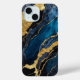 Blaue Marmormuster mit Gold iPhone 15 Fall