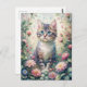 Ein blaues mit Augen Kätzchen im Blumengarten