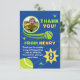 Versenden Sie eine fröhliche Dankesnachricht mit dieser modernen blauen Tennisball-Geburtstagskarte für Kinder. Mit einem spielerischen Tennisthema, hellen Farben, sportlichen Grafiken und Platz für ein Foto verleiht diese Karte der Feier Ihres Kindes eine persönliche Note. Sie ist perfekt für Kinder, die Tennis lieben oder sich über energiegeladene, sportliche Themenpartys freuen.