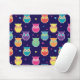 Blaues Regenbogen-Eulen-Mitternachtsmuster-hübsche Tween-Mausunterlage. Hübsches helles und buntes Eulenmuster kennzeichnet dunklen blauen Mitternachtshintergrund mit mehrfarbigen Eulen und Herzen. FERTIGEN Sie zur Änderungshintergrundfarbe zu Schwarzem, zum Weiß oder zu einer anderen Farbe besonders an. Aquamarines, rosa, lila, orange, gelbes, grünes Rot und Blau färbten Eulen. Themenorientierte Geschenke der entzückenden Eule des Spaßes für Kinder und liebevolle Tweens und Erwachsene der Eule.