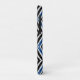 Ein abstraktes blaues, weißes und schwarzes Muster, das sich durch dynamische, rautenförmige Formen auszeichnet, die sich verflechten und überlagern und eine optisch ansprechende und moderne Komposition schaffen.