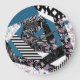 Blaues Patchwork, beliebt, Patchwork, Folk, rustik Große Wanduhr