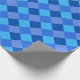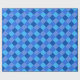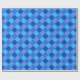 Blaue Quadrate wie ein Patchwork-Quilt sind das Muster dieses Packpapiers.