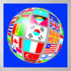 Globe der Flaggen der Welt auf blauem Hintergrund. Vollständig anpassbares Poster - mit Hintergrundfarbe und Rahmen. Erhältlich in verschiedenen Größen.