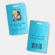 Modern blauer Gradient polygonaler Hintergrund und Foto, ID-Nummer und Strichcode