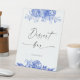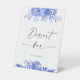 Blaues Porzellan Blumendessert Bar Sign Sockelschild