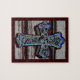 Dieses schöne Puzzlespiel wurde von einem Kreuz geschaffen, das ich mit bunten Kristall malte und schmückte. Ich hing dann das Kreuz auf einer schroffen alten Wand für einen einzigartigen rustikalen Blick!