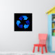 Schwarzes Poster mit leuchtend blau recycelnd Symbol.