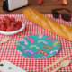 Blaues Regenbogen-Chamäleon-Muster Pappteller