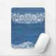 Blaues Rustikales Holz und Weiße Spitzen Lacy Baue Mousepad