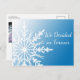 Blaues Schneeflocken Winterhochzeit Save the Date Ankündigungspostkarte