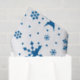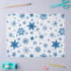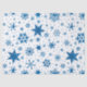 Lebendiges blaues Schneeflockenmuster auf weißem Hintergrund mit vielfältigen Formen und Größen. Ideal für Winter-, Feiertags- und Weihnachtsthemen, Grußkarten und festliche Designprojekte.